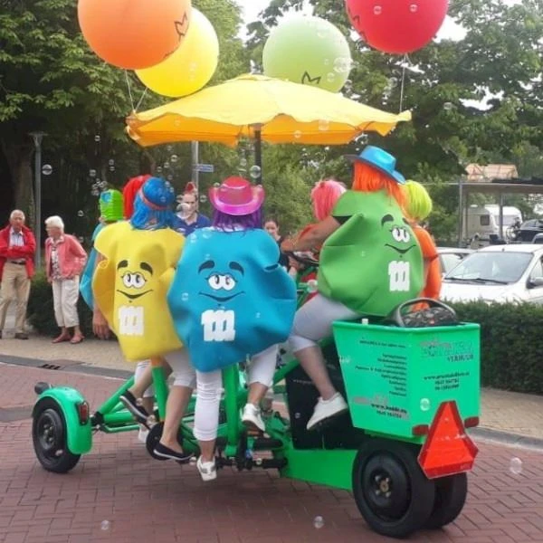 Das Stehtischfahrrad ist ein groBes Dreirad, das maximal sieben Personen Platz bietet. Sollten Sie das Stehtischfahrrad mieten, müssen Mieter und Fahrer einen Mietvertrag unterschreiben. Der Fahrer des Stehtischfahrrads muss einen Führerschein B besitzen und darf keinen Alkohol trinken. Alle Lieferungen und Leistungen unterliegen den Allgemeinen Bedingungen. Den Mietvertrag, die Fahrererklärung und die allgemeinen Bedingungen können Sie untern Downloaden. Unser Stehtischfahrrad ist für alle möglichen Feiern (Betriebsfeiern, Familienfeiern, Junggesellenabschiede, Hochzeite), Besprechungen oder Teambuilding einsetzbar. Aber auch für einen schönen Tag mit der Familie. Bei Beginn des Mietvertrages soll bar bezahlt werden. Sie bezahlen eine Kaution in Höhe der Materialmiete. Sie bezahlen also bei Lieferung den doppelten Betrag. Die Kaution bekommen Sie zurück wenn alles unbeschädigt zurück gebracht wird.​