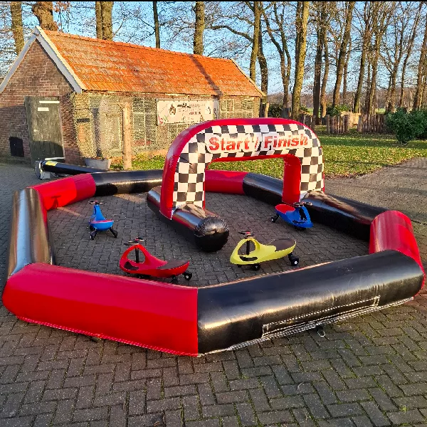 Auf dieser Mini-Go-Kart-Bahn können Kinder selbst ans Steuer und ihre eigene Geschwindigkeit entdecken. Eltern können zusehen und das Lachen und die Begeisterung ihrer kleinen Rennfahrer genießen. Die Mini-Go-Kart-Bahn eignet sich perfekt zur Kombination mit Didicars und macht Ihre Veranstaltung, Kinderparty oder Ihren Familienausflug noch abwechslungsreicher und unterhaltsamer. Ein echter Hingucker und eine Aktivität, die jedes Kind lieben wird.