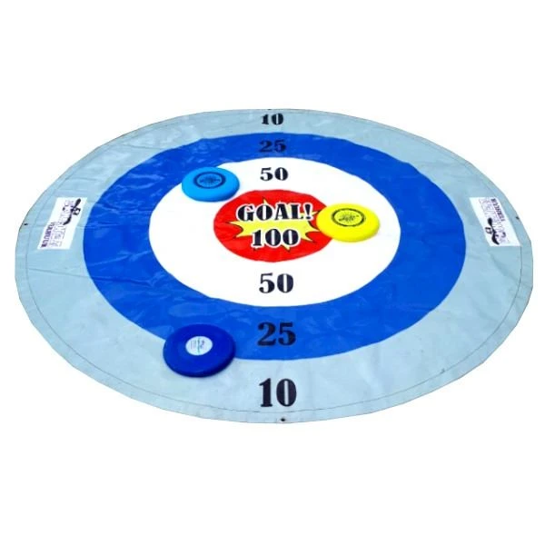 Die Leinwand hat einen Durchmesser von 2 Metern und es gibt 3 Frisbees.