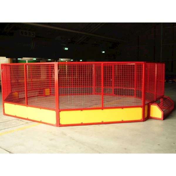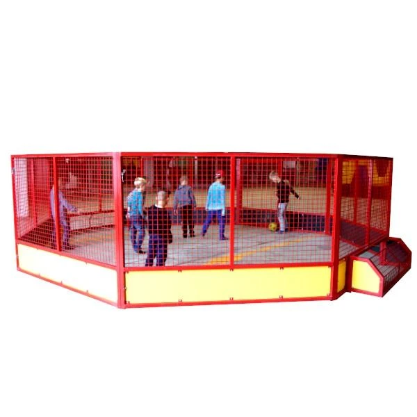 Diese Fußballkafig ist auf ein Anhänger gebaut. Denken Sie an die Nummernschild