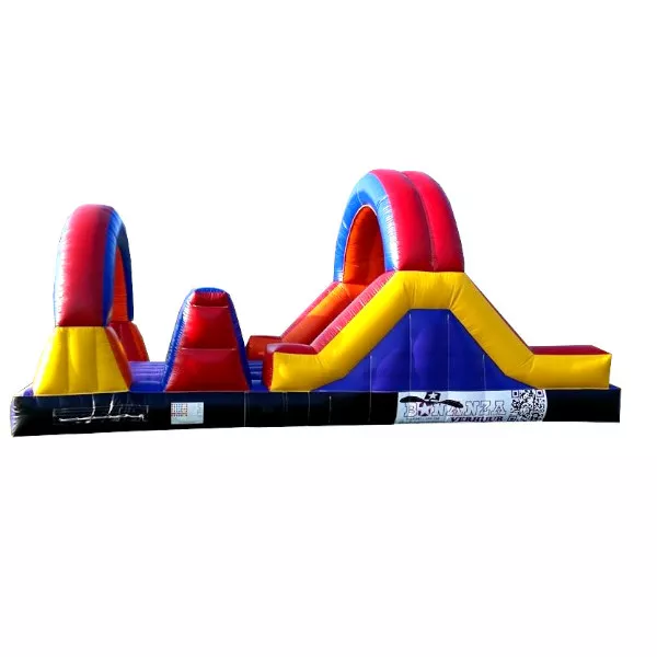 Die Survivalbahn ist eine 8 Meter lange Hindernisbahn. Dieser Hindernisbahn hat eine kleine Rutsche und eine Reihe von Hindernissen. Großartig für ein Event oder einen Hexathlon.