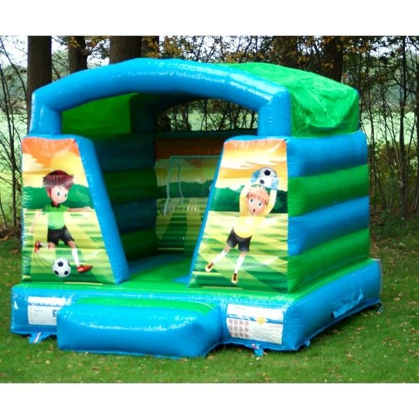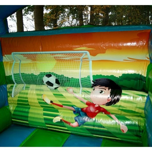 Die Hüpfburg Fußball ist ein Hüpfburg für Fußballkinder. Ideal für einen Fußballverein oder einen Sportverein. Da die Hüpfburg abgedeckt ist, können die Kinder trocken oder im Schatten springen. Die Hüpfburg im Fußballthema ist ein kleiner Hüpfburg, der dank der Breite von 3,5 Metern auf eine Auffahrt passt.
