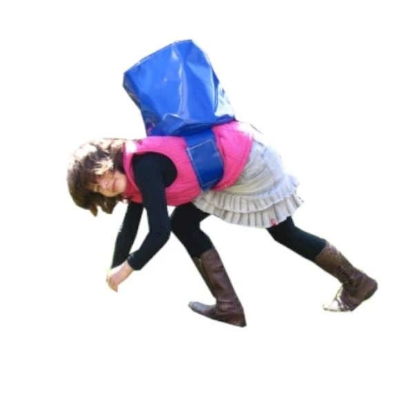 Du hast einen Eimer mit Wasser auf dem Rücken und musst ihn mit so viel Wasser wie möglich auf die andere Seite bringen.