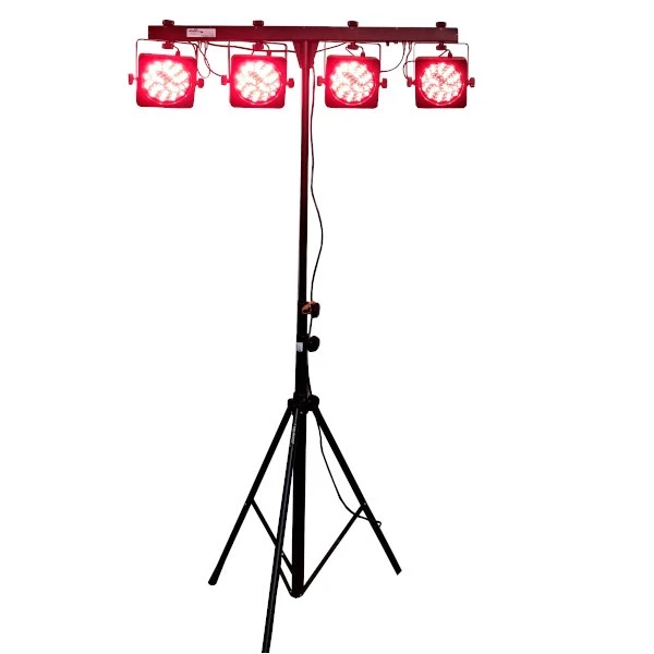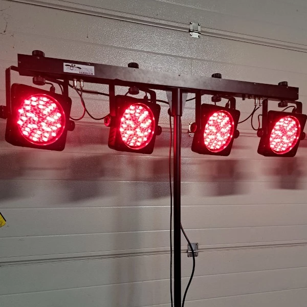 Die Lichtanlage wird auf einem stabilen Stativ geliefert und ist einzeln mietbar. Sie verfügt über mehrere Lichteffekte und verschiedene Farben für eine dynamische Lichtshow.