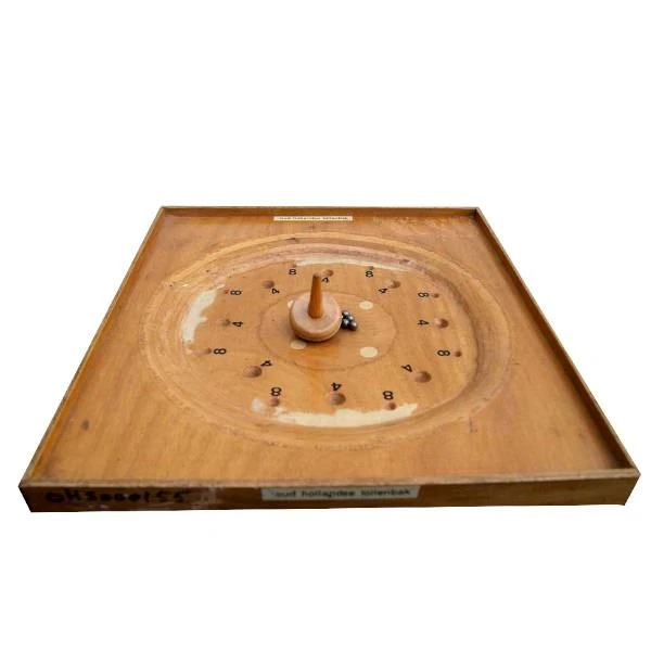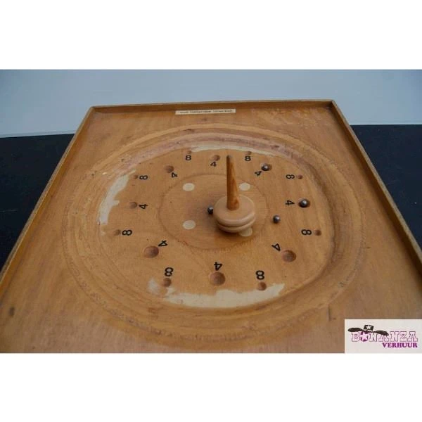 Legen Sie die Kugeln in den Behälter und beginnen Sie mit dem Kreisel zu drehen. Stellen Sie sicher, dass die Kugeln in die Löcher fallen und verdienen Sie diese Punkte. Sie können 3 mal drehen. Der mit den meisten Punkten gewinnt.