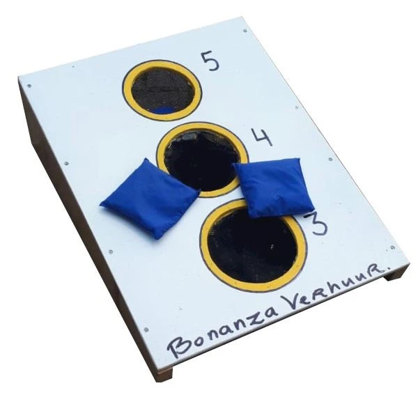Werfen Sie die Taschen in die Löcher. Das Team oder der Spieler, der zuerst genau 21 Punkte erzielt, gewinnt das Spiel. Aber Vorsicht, der Gegner kann die von Ihnen erzielten Punkte rückgängig machen, indem er sich selbst einschätzt!
