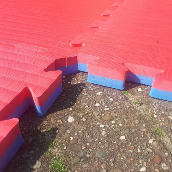 Diese Fallmatten oder Sicherheitsmatten sind 3 Zentimeter dick und können vor einer Hüpfburg platziert werden. Das Format ist 1 x 1 Meter und die sind 3 cm dick.