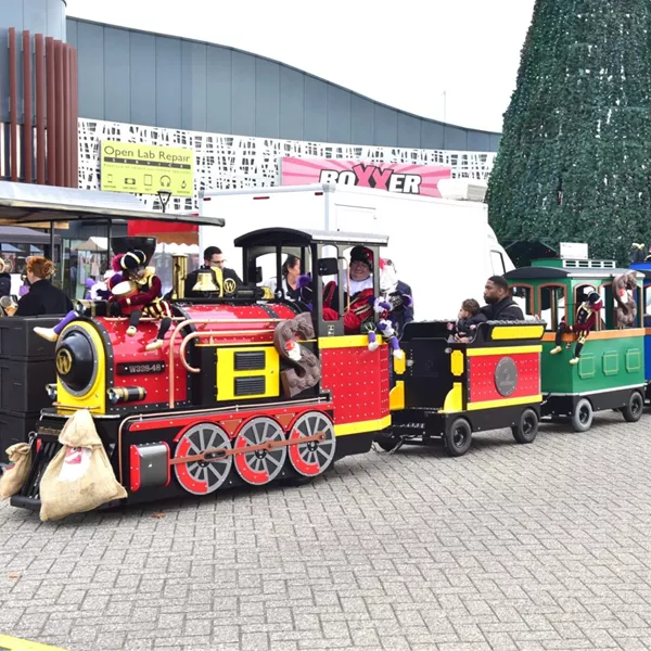 Erleben Sie ein unvergessliches Nikolauserlebnis mit unserem luxuriösen Nikolauszug, speziell für Kinder konzipiert. Dieser elektrische Kinderzug bietet Platz für 24 Kinder und ist vollständig im Nikolaus-Thema dekoriert, einschließlich fröhlicher Helfer- und Nikolausdekorationen. Selbst der Schaffner und Lokführer sind als Helfer verkleidet, was für eine festliche und magische Atmosphäre sorgt, die Kinder én Eltern verzaubert.