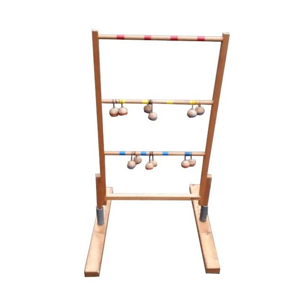 Wirf die Bälle mit einer privaten Bewegung aus einer Entfernung von ungefähr 5 Metern zur Schleuderleiter und stelle sicher, dass sich die Bälle, die an einer Schnur befestigt sind, um 1 der horizontalen Balken drehen.