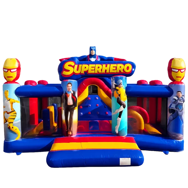 Diese mega Superheld Hüpfburg ist eine spektakuläre Attraktion mit Rutsche und mehreren Hindernissen. Kinder können klettern, springen, rutschen und zwischen den aufblasbaren Elementen spielen. Eine aktive und abenteuerliche Hüpfburg, auf der kleine Helden ihre Energie voll ausleben können.