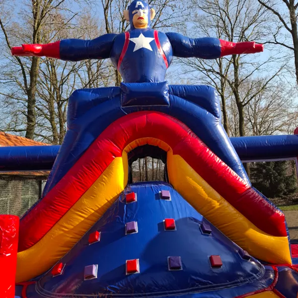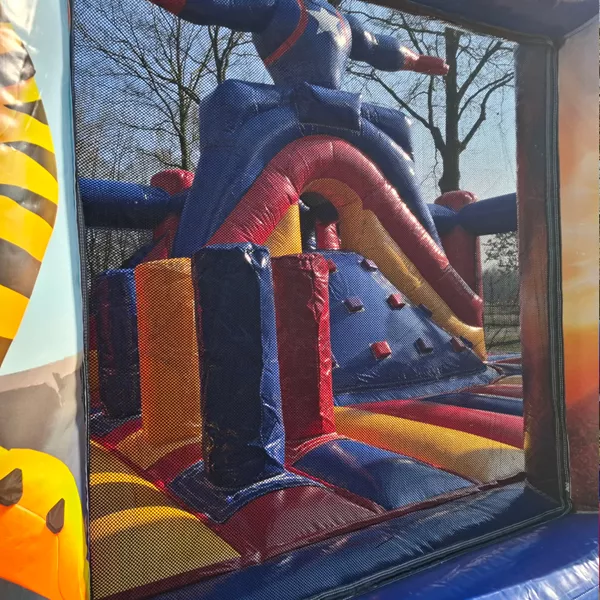Mega Hüpfburg Superheld mieten mit Rutsche und Hindernissen