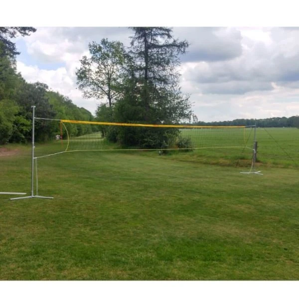 Erstelle deinen eigenen Volleyballplatz oder spiele Beachvolleyball. Eine lustige Aktivität für Jung und Alt. Einschließlich Stützen, Anker und Seile.