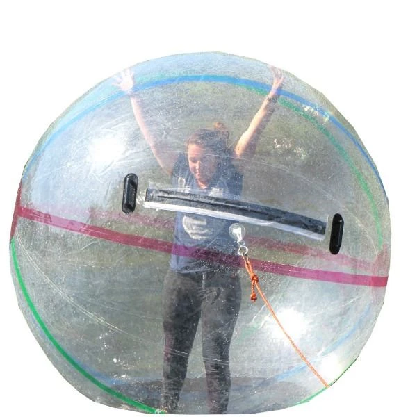Ein Seil, ein Gebläse und ein Anker werden mit der Wasserkugel geliefert. Auf diese Weise kann der Ball nicht mit einer Person darin treiben.